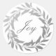 Chic Script Joy Silver Grey Wreath Christmas Classic Round Sticker