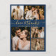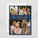 Elegant, Minimalist Gold and Navy Script Wedding 5 Photo Collage Thank You Postcard. Modern wedding thank you card template featuring five (5) photo on the front and one (1) photo on the back. With the text "Love and thanks" in a swirly hand lettered typography script font in gold on navy blue background colour. Add your name, photos and thank you message. If you prefer to handwrite your note, just delete the sample text to make more space. Please contact me if you need help with this design.