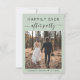 Elegant sage green elopement or private wedding announcement and post-wedding reception invitation featuring your photo and "Happily Ever After Party" in simple typography and a chic script with swashes. On the reverse side, personalise your announcement and add your party or reception invitation details and your names in a signature-like script.