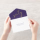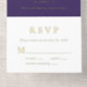 Elegant purple 60th birthday party all-in-one invitation with "sixty" in a large chic script, your name and "RSVP" in classic serif typography and the party details in simple lettering, all rendered in your choice of genuine gold, silver or rose gold foil. A white tear-away RSVP postcard provides a convenient envelope-free response option for your guests.