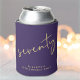Fun purple can cooler for her 70th birthday party that features "seventy" in a chic gold script and her name in simple gold typography.