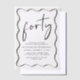 Elevate her 40th birthday party with this vellum paper invitation featuring a trendy wavy border, "forty" in a chic large script, her name in classic serif typography and the party details in simple, modern lettering. If desired, overlay the invitation on a photo of the honoree for a sophisticated and timeless touch.