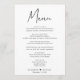 Chic wedding reception dinner menu with "Menu" in a stylish modern script, your menu in simple typography, your names joined by a heart and your reception date.