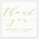 Simple and chic wedding thank you stickers to use as party favours and envelope seals! The stylish wedding stickers feature a gold script font and placeholders for your custom text on a white background.