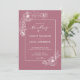 Chic Script White Floral Outline Cassis Wedding Invitation
