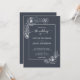 Chic Script White Floral Outline Dark Blue Wedding Invitation