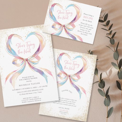 She's Tying The Knot Pink Bow Bridal Shower Invitation