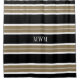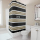 CHIC SHOWER CURTAIN_MODERN 620 TAN/BLACK/WHITE STRIPES, WHTIE 3 INITIAL MONOGRAM