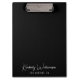 Stylish black clipboard with a minimalist vibe featuring your name or business brand in a chic white signature script. Add additional text below in simple modern white lettering.