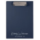 Chic blue clipboard with a minimalist vibe featuring your name or business brand in a stylish white signature script. Add additional text in simple modern white lettering.