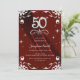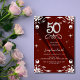 Chic Silver Floral Frame Burgundy 50th Birthday Invitation