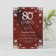 Chic Silver Floral Frame Burgundy 80th Birthday Invitation