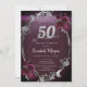 Chic Silver Frame Burgundy Roses 50th Birthday Invitation