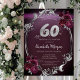 Chic Silver Frame Burgundy Roses 60th Birthday Invitation