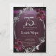 Chic Silver Frame Burgundy Roses 75th Birthday Invitation