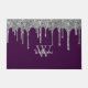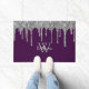 Chic Silver Glitter Drips Monogram Name Purple Doormat
