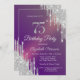 Chic Silver Glitter Drips Purple 75th Birthday Invitation