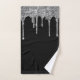 Chic Silver Glitter Drips Sparkle Black Bath Towel Set
