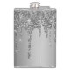Chic Silver Glitter Drips Sparkle Monogram Hip Flask