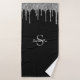 Chic Silver Glitter Drips Sparkle Monogram Name Bath Towel Set