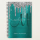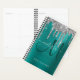 This chic and elegant personalized planner features your monogram initial in the center with your name in white script on a background of teal brushed metallic and top border of faux silver dripping glitter. Below it reads "20XX PLANNER". Designed just for you by ExtremeTees.