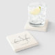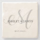 Chic Silver M Monogram Script Name Wedding Date Stone Coaster