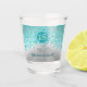 Chic personalised shot glasses with teal blue glitter and silver colours.