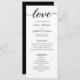 Personalise and customise this easy to use, editable wedding program template. Black and white, chic, modern, elegant and simple. Customise the bride and groom's names, location, wedding date, ceremony order of service, wedding party names (including bride and groom's parents, officiant, maid of honour, best man, groomsmen, flower girls, bridesmaids, ring bearer) personalise for your own wedding entourage. A thank you message can also be edited to personalise this with your own words for your guests.