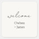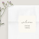 Chic and elegant 'welcome' wedding sticker, featuring couple names in a contemporary set of neutral blackish fonts against a chic ivory background. This item forms part of a wedding suite containing invitations and stationary in a variety of neutral mix and match items. .