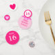 Chic sixteenth birthday heart on pink and white Table Confetti. Texts and numbers ready to be personalised. Diamond image accent for a touch of elegance!