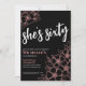 Chic Sixty Black Rose Gold 60th Birthday Party Invitation. A fun but elegant 60th birthday party invitation with girly pink rose gold, black and white flowers for the young at heart. Please note there is no gold shimmer or foil, it is simply a colour. A playful flower pattern frames a script typography "she's sixty" mixed with a more classic serif font. Celebrate sixty years of life with this beautiful botanical design. The fun part is you can change out ALL of the colours!! You can not only change the background colours and font, but you can change the lines for the flowers as well.