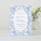 Make a refined first impression with this wedding invitation featuring classic French toile de jouy roses in elegant shades of navy blue, royal blue, dusty blue, and deep blue. Inspired by timeless European floral design, this invitation blends traditional sophistication with modern elegance, perfect for a classic, romantic, or formal wedding celebration.