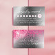 Glam loyalty business cards for makeup and hair stylists salon with pink glitter and white sparkle accents and a black grey holographic background.