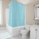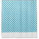 A simple pattern of teal blue spots on a white background.This chic and cheerful shower curtain has a white border.