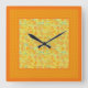 A chic Square Wall Clock, with a mix'n'match pattern of golden daffodils and coordinating polka dots, from a handpainted watercolour design by Judy Adamson.