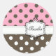 Cute and Classy Sticker designs by The Frisky Kitten. The modern two-tone polka dot pattern personalised Sticker design by The Frisky Kitten has a stylish pink,white and brown polka dot pattern background with monogram area for personalisation.Add your own personal touch by adding your own text. The Frisky Kitten is your go-to online source for the most trendy,cute,classy,funky,cool and personalised designs on modern paper goods,stylish business cards,and exclusive gifts. Visit us as : www.zazzle.com/thefriskykitten*