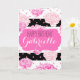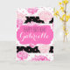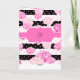Pink Black & White Horizontal Stripes & Polka Dots & Watercolor Peony Flowers Cute Chic Name & Custom text Greeting Card. Personalise it with Your Custom text, Name, Initials, or Quote. Cute on Trend Geometric Fat Horizontal Stripes design, with Dots. Fun Personalised Text, in Stylish Modern Pink & Black Floral Peonies Watercolor Pattern.