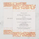 Stylish, trendy design of digitally rendered gold leaf circle pattern on digital image of peachy pink linen background. A wonderful fusion of festive and elegance makes this a versatile invite - ranging from sweet 16 parties,,prom and dance parties to wedding and bachelorette parties.
