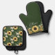 Chic Sunflower Floral Pattern Custom Script Name Oven Mitt & Pot Holder Set