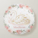 Chic Swan Princess Pastel Blush Floral Gold Round Cushion