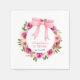 Sweet girl's birthday party paper napkin features a watercolor rose flower wreath with a big pink bow.