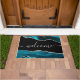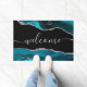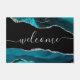 Chic Teal Agate Silver Glitter Script Welcome Doormat