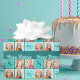 Chic 4 photo happy birthday wrapping paper for trendy girl's birthday gifts. Celebrate your child's birthday with four beautiful photographs of them on this add your own photograph gift wrap with turquoise squares. Add their name and age under Happy Birthday.