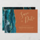 Chic Teal Blue Gold Agate Burnt Oran Save the Date Invitation