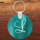 This chic keychain features a large white script monogram on a background of teal brushed metallic texture. A unique girly gift for birthday, holidays and any special occasion. Designed just for you by Extreme Tees!