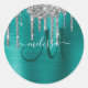 Chic Teal Brushed Metallic Silver Glitter Drips Classic Round Sticker