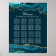 Chic teal and gold agate decorates the top and bottom of this elegant party seating chart poster. Beautiful decor for a Bat Mitzvah or birthday party with up to 16 tables. Trendy, glam border and white typography.