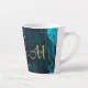 Chic Teal Gold Glitter Agate Custom Monogram Latte Mug