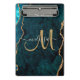 Chic Teal Gold Glitter Agate Custom Monogram Mini Clipboard