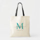 Modern Trendy Elegant Teal Green Black Monogram Initial Script Name Tote Bag